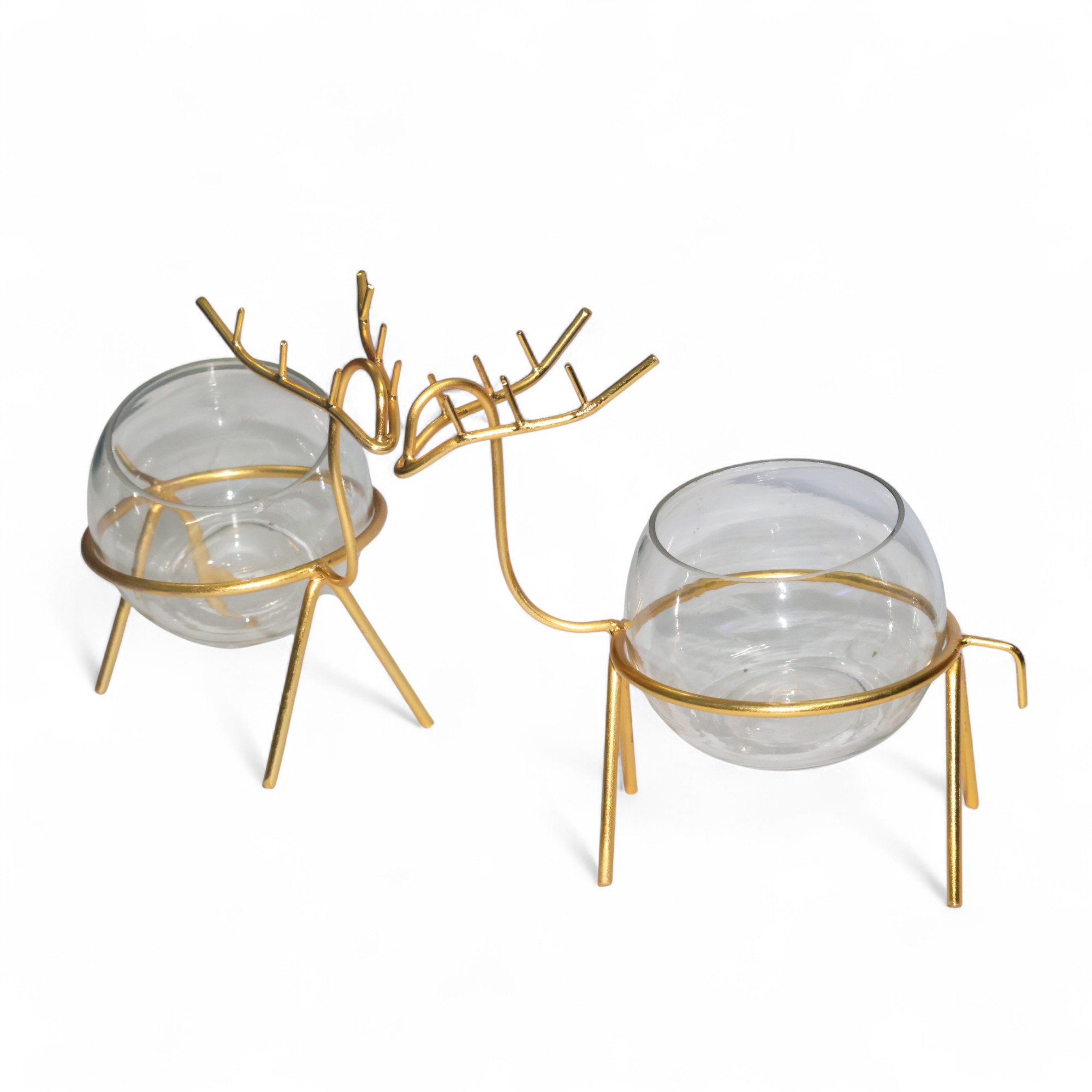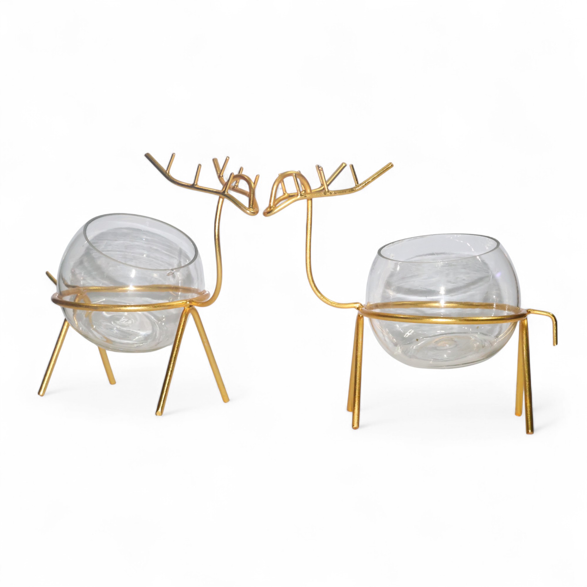 Magadha Decor Golden Deer Glass Planter – Set of 2